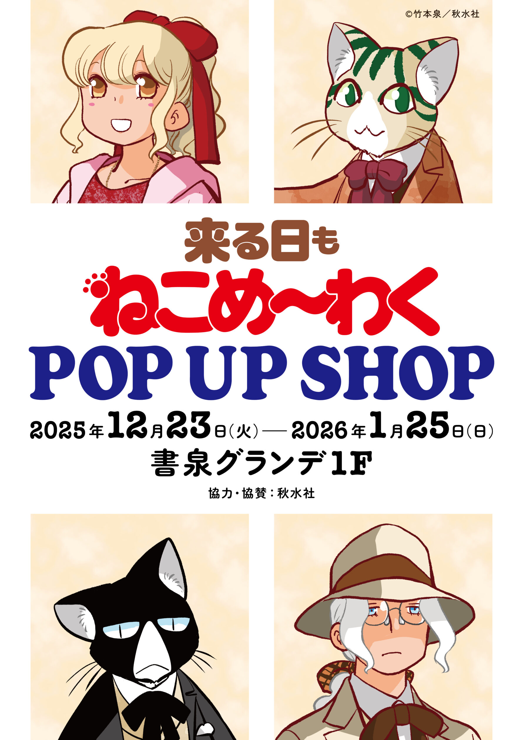 日本全国の「ねこめ」ファン待望の初POP UP SHOPが書泉グランデ(神保町)で開催! 12月23日(火)の新刊発売を記念して竹本泉先生が新たに描きおろしたイラストを含むグッズを販売‼