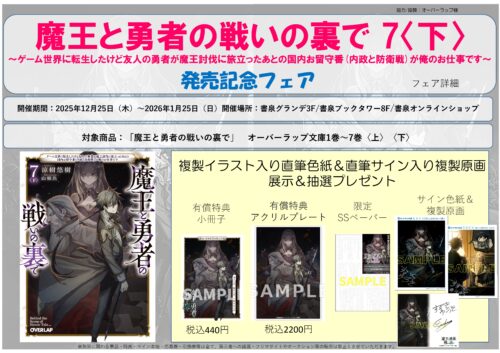 書泉ブックタワー8階, 書泉グランデ3階にて、「魔王と勇者の戦いの裏で 7 〈下〉~ゲーム世界に転生したけど友人の勇者が魔王討伐に旅立ったあとの国内お留守番(内政と防衛戦)が俺のお仕事です~」発売記念フェアを開催いたします!