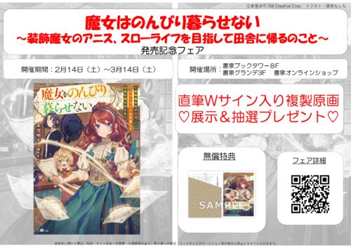 書泉ブックタワー, 書泉ブックタワー8階, 書泉グランデ3階にて、「魔女はのんびり暮らせない ~装飾魔女のアニス、スローライフを目指して田舎に帰るのこと~」発売記念フェアを開催いたします!