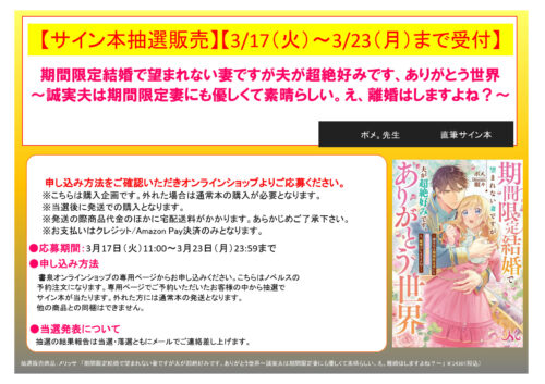 書泉オンラインショップにて専用ページから予約注文された方から抽選させていただきます。